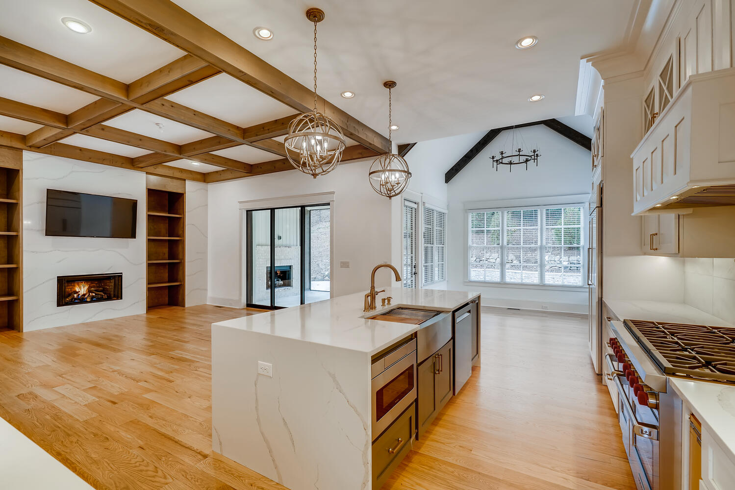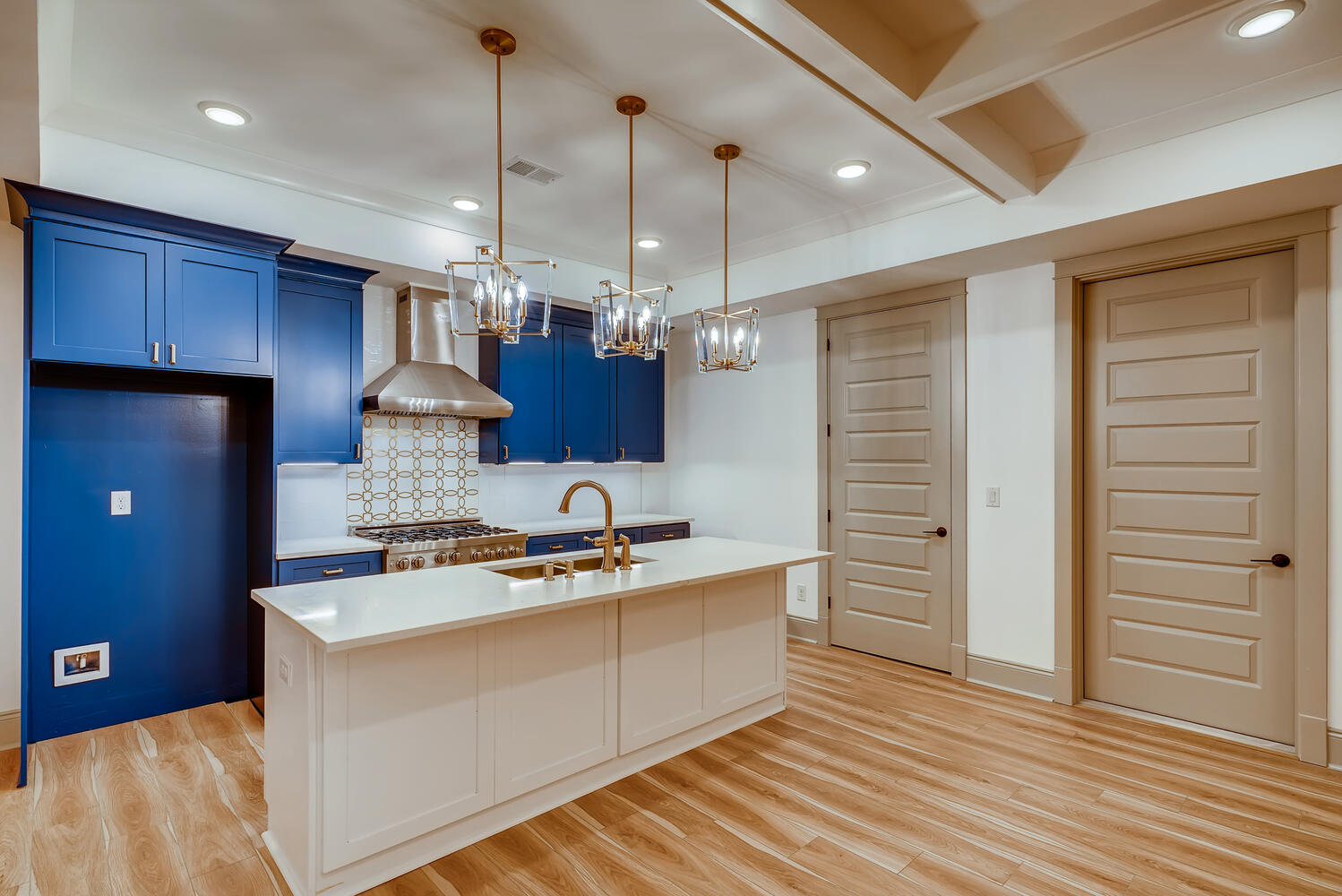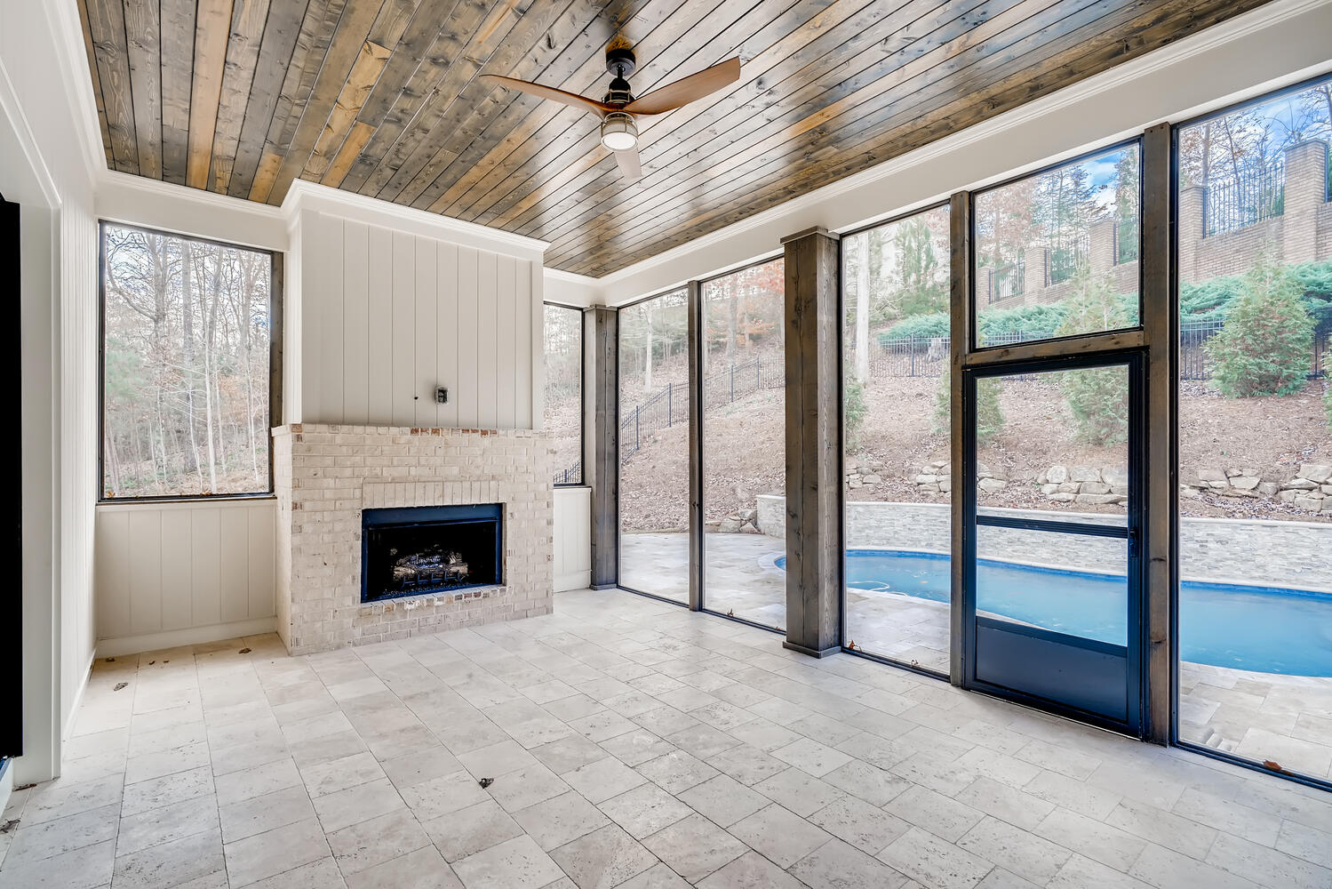 This house catches the eye with its bold blue accents, but there is far more that makes this home worthy of a family's inhabitance. The floor plan is very open, and is an excellent choice for families of all sizes. When the weather is unfavorable for the pool, your family can warm up with the fireplace in the adjacent loft.