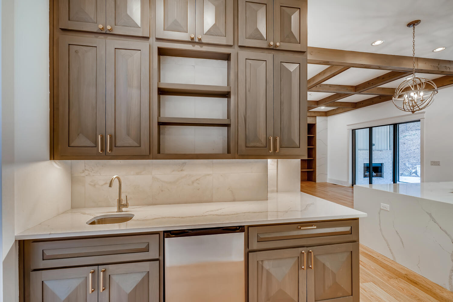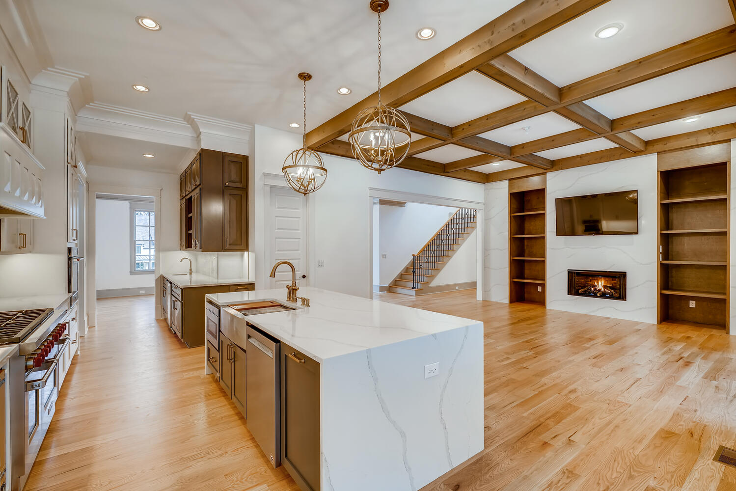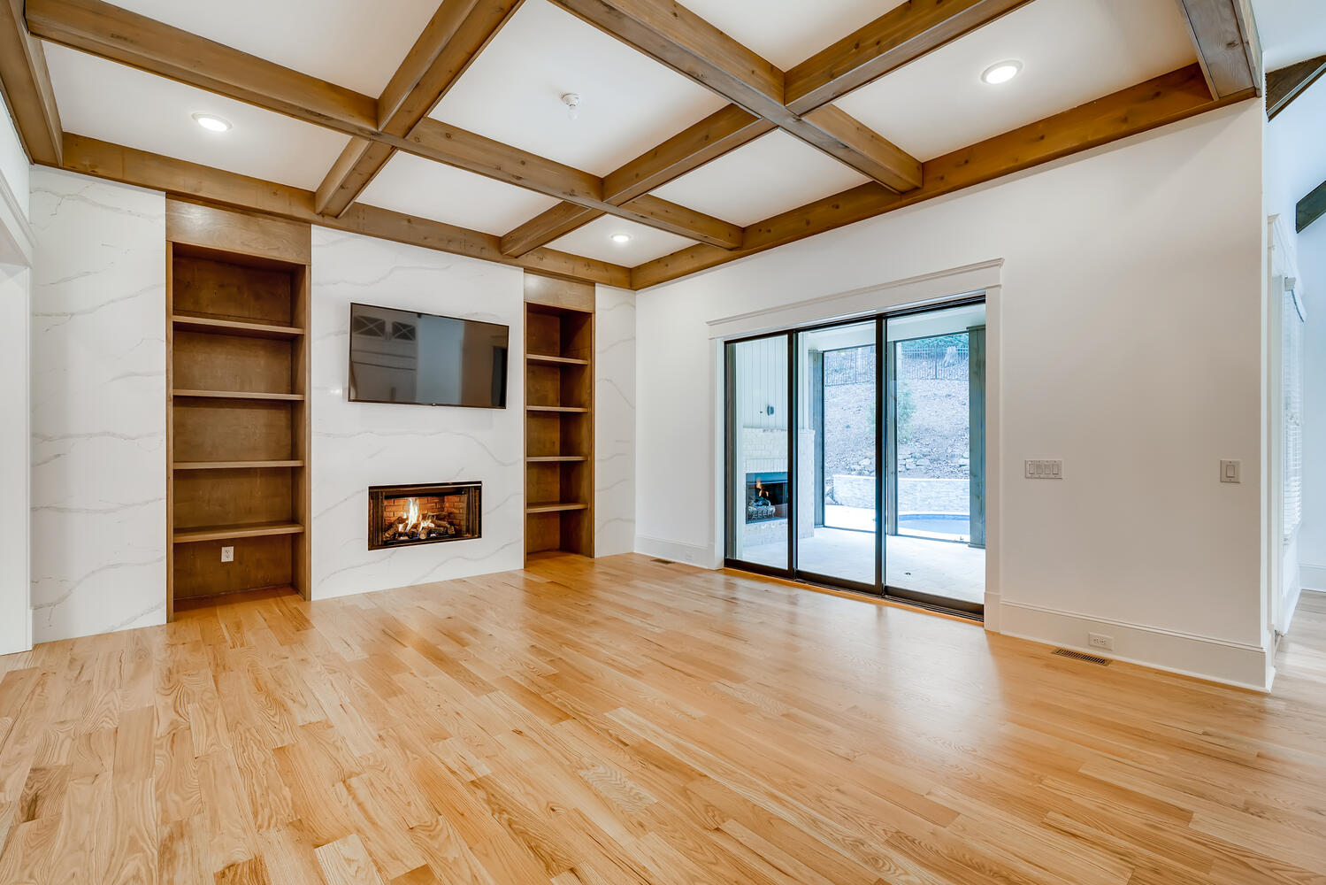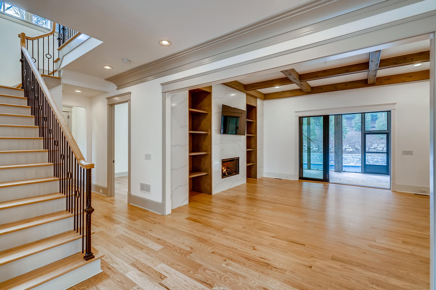 This house catches the eye with its bold blue accents, but there is far more that makes this home worthy of a family's inhabitance. The floor plan is very open, and is an excellent choice for families of all sizes. When the weather is unfavorable for the pool, your family can warm up with the fireplace in the adjacent loft.